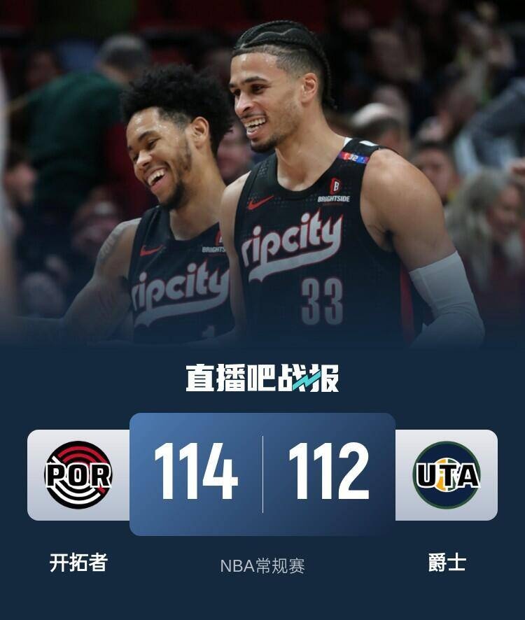首节对决双方打得比较开放进攻端表现都很出色,双方单节均拿到30+的得分;不过次节双方走向两端,爵士突然哑火状态骤降,后半段6分在里爵士仅得到3分,开拓者抓住机会送上一波18-3的攻势一举反超并拿到10分领先进入下半场。休息归来爵士找回进攻感觉不断蚕食分差,末节开局一波8-0的攻势将上半场挖坑的分差填平。不过平手节点上开拓者及时找回感觉,他们迅速回敬15-5的攻势重新拉开比分,爵士也没有放弃回敬7-0追上比分保留希望,最后时刻乔治连续飚进三分,不过最关键的绝杀不中遗憾落败。最终,开拓者客场击败爵士拿下比赛。