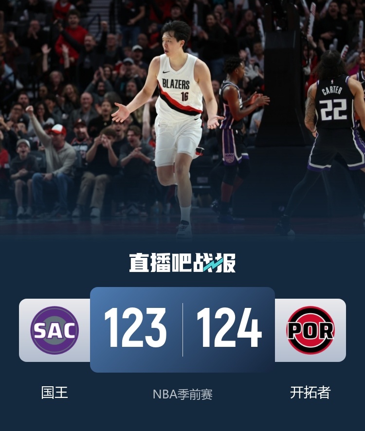 10月11日讯 NBA季前赛,开拓者今日迎战国王,前者上场比赛不敌勇士,杨瀚森的表现中规中矩,后者则是不敌猛龙。