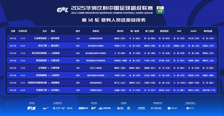 中超第14轮裁判: