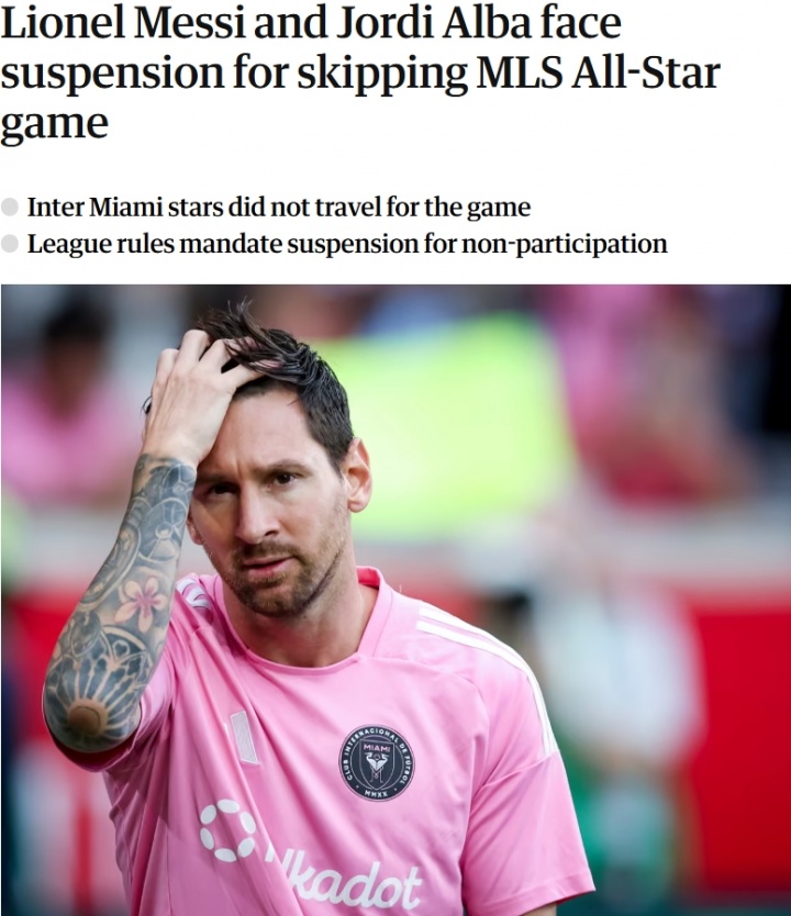 梅西和阿尔巴此前均入选美职联全明星阵容,但他们最终选择不参加本场比赛。因此按照美职联的规定,他们将被停赛一场,无法参加迈阿密国际的下一场比赛。美职联尚未对此发表公开声明。