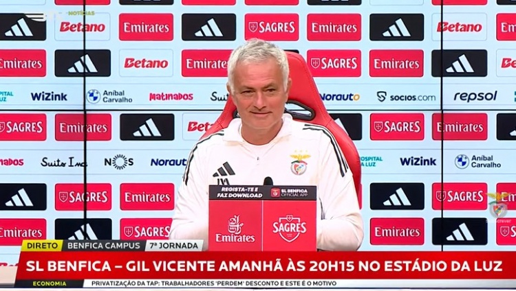 9月25日讯 北京时间9月27日3:15,本菲卡将在葡超第7轮主场迎战维森特。赛前,本菲卡主帅穆里尼奥出席新闻发布会。